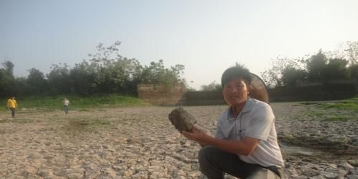 一个月前,三亚梅山地区定其园水库已经干涸。
