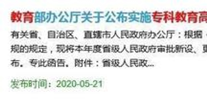 摘要: 记者查阅教育部发布的新设立高等职业学校名单发现,海南卫生健康职业学院名列其中,属于公办学校,学校识别码为4146014724。报全媒体讯(椰网/海拔手机端记者 王茹)5月21日,教育部官网公布《教育部办公厅关于公布实施专科教育高等学校备案名单的函》:根据《中华人民共和国高等教育法》《普通高等学校设置暂行条例》等有关法律法规的规定,教育部办公厅公布本年度省级人民政府审批新设、更名、合并调整、变更办学体制、撤销的专科层次高等学校备案名单。国际旅游岛商报记者查阅教育部发布的新设立高等职业学校名单发现,海南卫生健康职业学院名列其中,属于公办学校,学校识别码为4146014724。