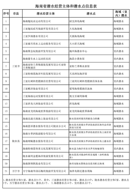 海南21个潜水点集中在这3个市县