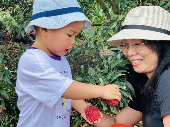 采摘完莲雾后大家依然意犹未尽,知道当地的火山荔枝王品质极佳,跟着继续前往荔枝园采摘。“这边的荔枝又大又甜,好吃到停不下来!”参与采摘的陈阿姨不禁感叹到。园内充满了欢声笑语,大家尽情在田野漫步中呼吸纯正鲜氧,于亲子的互动中采摘欢乐。