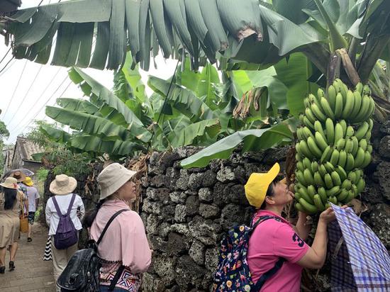 美梅村是拥有800多年历史的火山古村落,现存多个火山石院落。走进美梅村,火山石垒砌的围墙沿两边是绿树掩映的农家院子,村民房前屋后种满荔枝、菠萝蜜、黄皮等果树,村中许多古树盘根错节成为奇观,还有保存完好的火山石村门、古炮楼……在讲解员的诠释下,小朋友们听得津津有味。