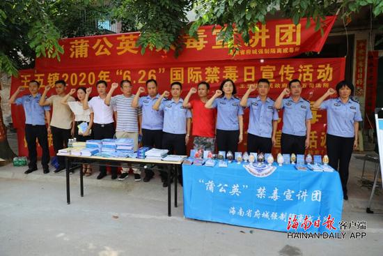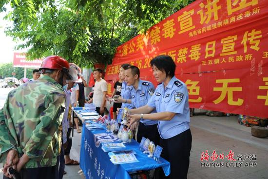 “走过,路过,不要错过;看一看,瞧一瞧,毒品危害不得了”“停一停,看一看,用您十分钟的驻足,守护孩子一生的幸福”。随着一声声嘹亮的吆喝声,大量群众不约而同地走到禁毒宣讲“地摊”前,争相了解毒品知识,观看仿真毒。6月24日,省府城戒毒所“蒲公英”禁毒宣讲团在省戒毒管理局定点扶贫单位——儋州市王五镇街头举办了一场别开生面的“地摊”式普法活动。