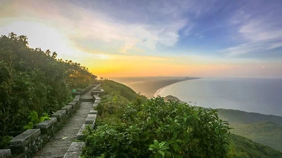 △铜鼓岭位于文昌市龙楼镇,西连内陆,三面环海。铜鼓岭主峰海拔338米,地貌奇特,植被繁茂。登高远眺,月亮湾浪涌千层,七洲列岛时隐时现,海天一色空朦。
