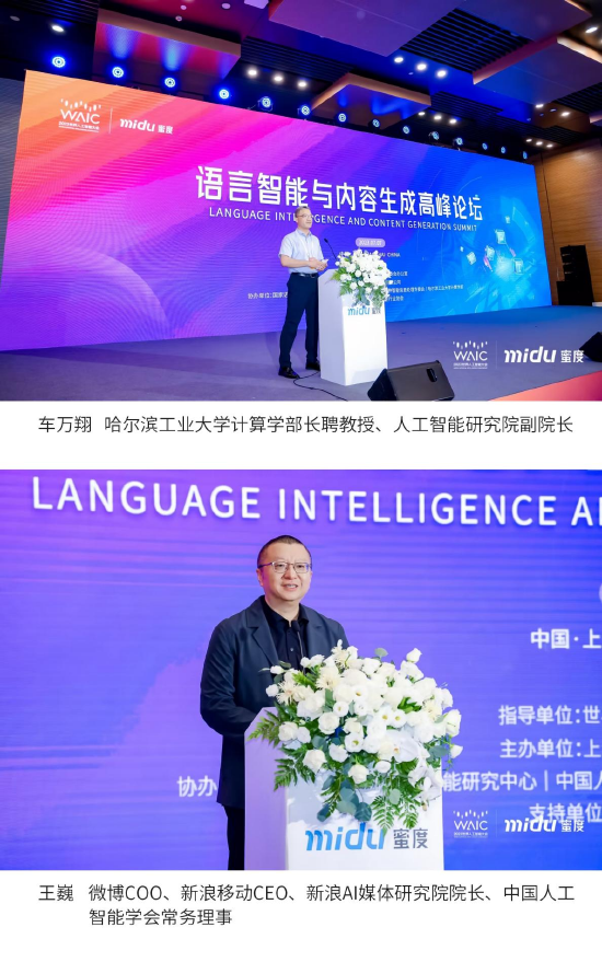 除了蜜度文修大模型的重磅发布之外,论坛现场汇集了行业洞见思考及先驱科研讨论。论坛由哈尔滨工业大学计算学部长聘教授、人工智能研究院副院长车万翔主持,微博COO、新浪移动CEO、新浪AI媒体研究院院长王巍致辞。