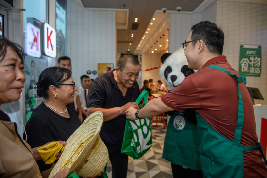 为响应粮食日的号召,海南热带野生动植物园的工作人员们还别具创意的扮上熊猫人偶的形象,以此来号召更多人加入到爱惜粮食的行动中。据了解,大熊猫“贡贡”和“舜舜”是海野动物园的两只动物明星,它们的形象IP也多次作为海南的公益推荐官出现在节约粮食、光盘行动的号召中,这也与肯德基“食物驿站”的公益理念不谋而合。本次“贡贡”和“舜舜”更是以肯德基食物驿站“一日站长”的新身份参与到活动中来,其憨态可掬的形象顿时收获了大批现场“粉丝”,居民们一边参观“食物驿站”一边听着工作人员的细致讲解,大熊猫“一日站长”的加入也将现场气氛推向了高潮。