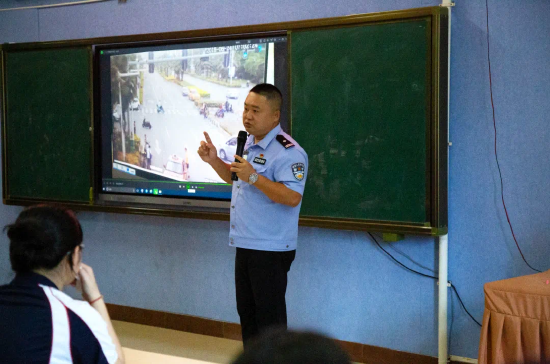 走进课堂,交警宣传员结合市区道路现状与中小学生交通事故案例,向学生们讲解交通安全事故频发的原因和造成的严重后果,告诫学生们驾驶乘坐二轮车时务必佩戴好安全头盔、乘坐机动车系好安全带、未取得机动车驾驶证不能驾驶机动车,提醒他们不要乘坐无证无牌、酒驾、超员等存在违法行为的车辆。