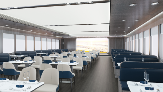 海旅01船体共分三层,各具特色。一层客舱通透明亮,超大船窗将海上风光毫无保留地呈现在游客眼前。在这里,游客可以品尝到粤式早茶、西式下午茶等美食。