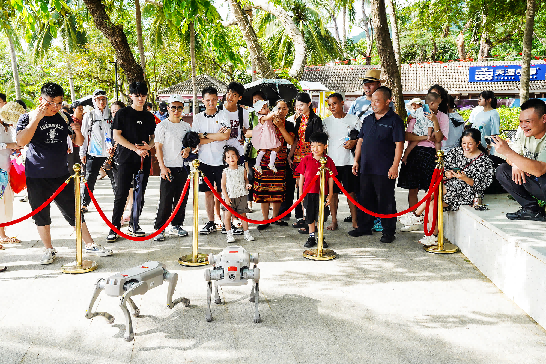 智能联合呈现的运动机器狗互动体验。在天涯石休息区,这款“科技萌宠”现场展示动感机械舞表演,游客可以在现场操作机器狗体验互动”,在呈现科技与文旅融合的独特魅力的同时,为传统景点注入创新活力。