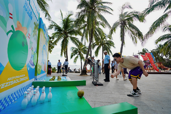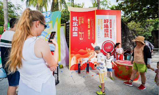 “国风趣游园,赢好运椰礼”互动游戏,涵盖礼乐投壶、好运福鼓、妙趣猜灯谜、汉服体验、椰子保龄球等精彩游戏,游客通过集章即可参与抽取“天涯好运椰礼”,在欢声笑语中沉浸式体验浓郁的节日氛围。