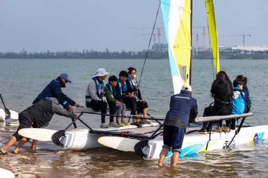 赛事的全民惠民属性持续释放。自26日启动以来,“帆船体验营”人气高涨,周末参与人数尤为集中,专业教练一对一指导掌舵、调帆技巧,让零基础参与者快速解锁航海乐趣。来自成都的程诗茼一家四口参与了体验营,今年刚定居海南的他们,因喜欢海南天气选择举家搬迁。“我们一家人都喜欢运动,爸妈早上晨跑时发现了这个比赛,我之前玩过桨板,所以想尝试一下帆船。”程诗茼说。家长认为,海南的水上运动资源特别丰富,孩子之前是校足球队的,希望她多接触不同类型的运动,“这边阳光充足,也希望孩子能像太阳一样向阳生长,快乐成长。看着江上比赛的小朋友们,觉得特别棒,这次体验以后有兴趣的话也可以让孩子尝试系统学帆船。”