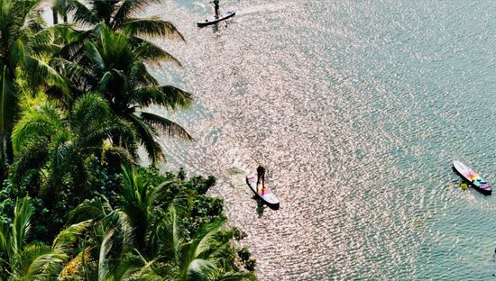 游客在万宁体验桨板运动。