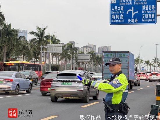 关注商报全媒体讯(椰网/海拔新闻记者 陈勇合 摄影报道)2026年的开篇,当人们沉浸在新年的喜悦中时,海口市公安局交通管理支队龙华大队TPTU队员彭前飞依旧坚守在路面一线,用脚步和指挥手势守护着城市的交通秩序。