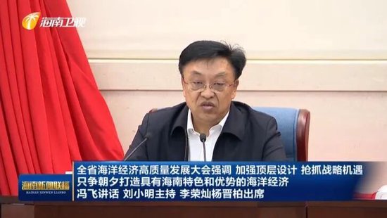 2025年11月14日,全省海洋经济高质量发展大会在海口召开。省委书记冯飞讲话,省长刘小明主持会议。