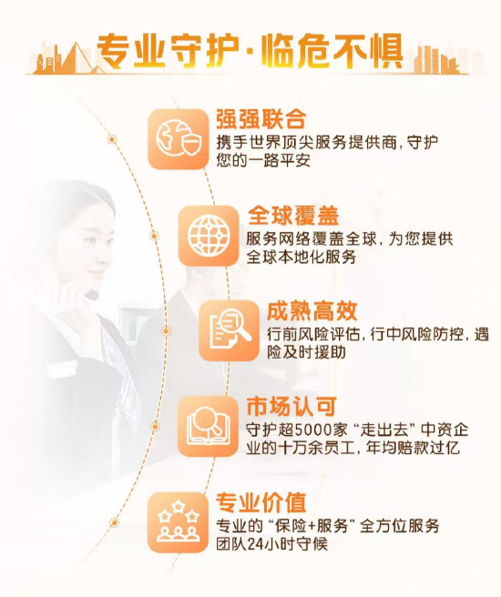 平安24全球守护计划是针对出国务工、商旅人群及留学人群推出的定制化保险产品,旨在为“走出去”的中国企业及个人提供全面的风险保障。本产品突破传统服务和理赔方式,通过整合全球顶级的救援资源,以“先救后赔”服务方式,确保在危机时刻,客户能够得到即时有效的救援,为每一位中国公民的海外旅程提供全方位、无微不至的守护。