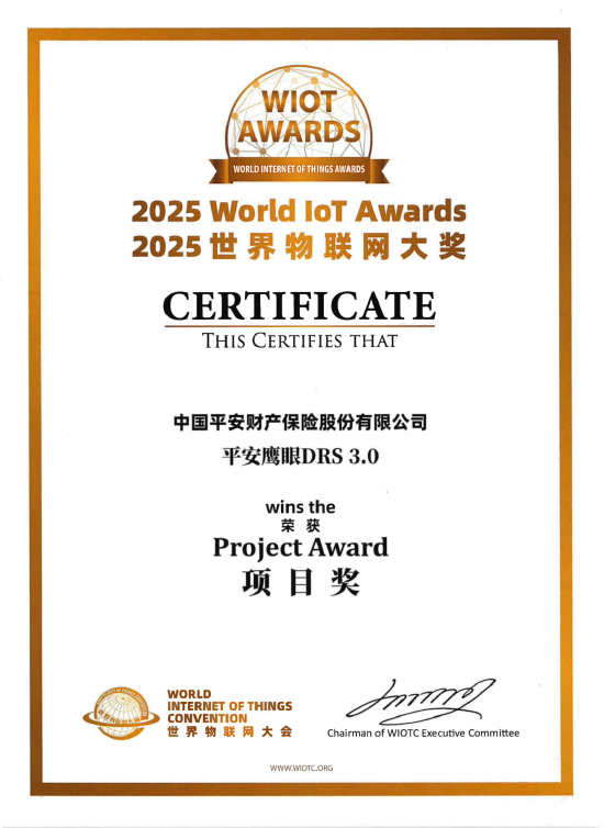 “平安鹰眼DRS3.0”荣膺2025世界物联网大奖,刷新金融行业获奖记录