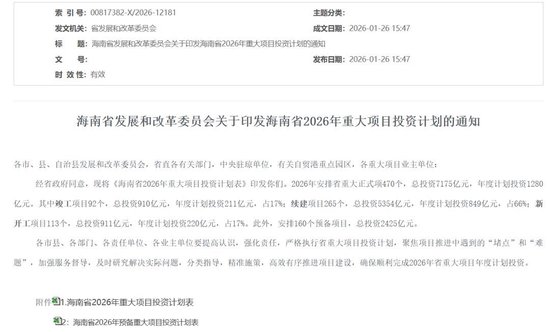 总投资7175亿元!海南印发2026年重大项目投资计划