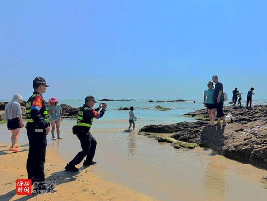 针对“牛奶海”部分区域暗礁多、存在离岸流风险的特点,派出所提前部署,联合潭门镇政府在醒目位置设立安全警示牌,利用警车喇叭进行流动喊话宣传。同时,他们积极发动本地渔民、商贩等力量,组建群防群治“义警队”,延伸警务触角,确保一旦发生游客溺水、物品遗失、人员走散等情况,能第一时间联动处置。