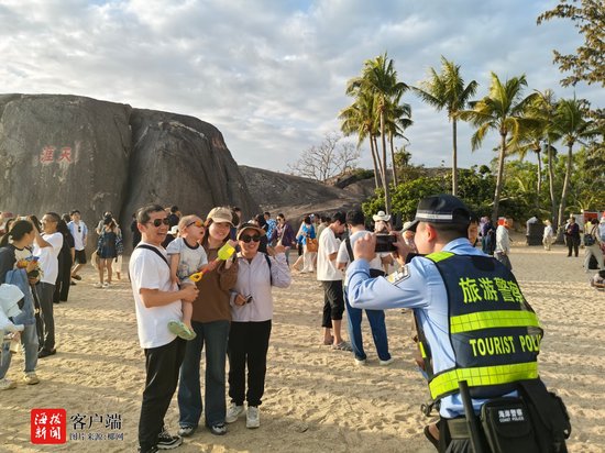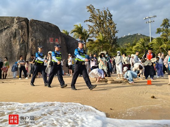 关注商报全媒体讯(椰网/海拔新闻记者 徐明锋 通讯员 黄恒 曹雪瑞 朱胜华 摄影报道)新春佳节,三亚滨海旅游景区迎来客流高峰。海南省公安厅反走私和海岸管理总队第四支队海角海岸派出所紧扣三亚旅游警务“金名片”建设部署,聚焦西岛海洋文化旅游区游客中心(肖旗港)、天涯海角、天涯小镇沙滩三大核心景区,坚持“警力跟着警情走、服务跟着游客走”,全警动员、坚守一线,以严密防控、高效巡防、暖心服务。