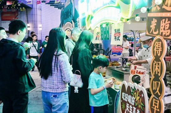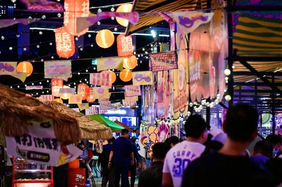 “我们是下午从电影公社逛完直接过来的,刚好赶上夜市开门。”来自江苏的游客刘先生一家三口正围坐一桌,桌上摆满了各色小吃,“孩子想吃寿司,我爱人喜欢泰式口味,我偏好本地烧烤,这里全都能满足。一家人各取所需,坐在一起慢慢吃,这才是过年的感觉。”