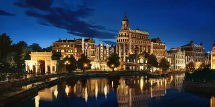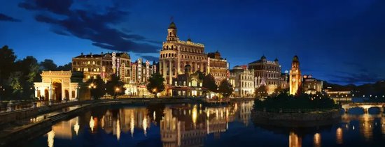 夜幕低垂,华灯初上,观澜湖华谊冯小刚电影公社内灯火璀璨,游人如织。错落有致的南洋风情建筑在灯光映衬下更显复古韵味,街头巷尾悬挂的红灯笼烘托出浓浓的年味。