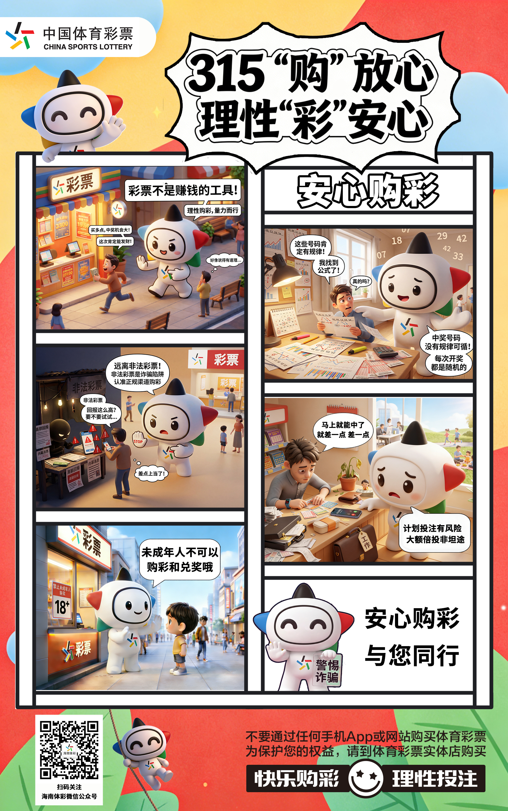 315“购”放心 理性“彩”安心 综合 03月15日 17:33 关注 确定不再关注此人吗 今天是3·15国际消费者权益日 海南体彩在此温馨提醒广大购彩者: 彩票不是赚钱的工具 中奖号码没有规律可循 未成年人不得购彩和兑奖 非理性购彩有危害 远离非法彩票 分享文章到: