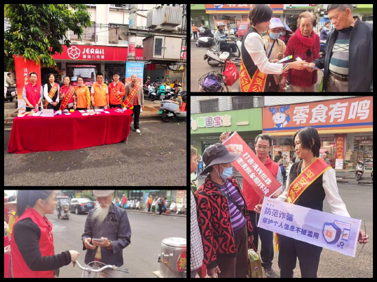 活动现场,平安金融志愿宣传员们通过悬挂宣传横幅,摆放各式宣传折页材料、吸引群众积极参与、咨询互动。志愿者们向社会人员宣传非法金融活动的陷阱、个人信息保护、老年人谨防诈骗等知识,提升社会公众对于非法金融的认知及防范,加强自我保护意识,提高识别风险的能力。同时,以日常生活中常见的消费现象为例,深入浅出为辖区居民讲解作为消费者的权利。并通过问答的方式,引导群众参与进来,帮助金融消费者了解金融常识,掌握维权手段,提高维权能力。
