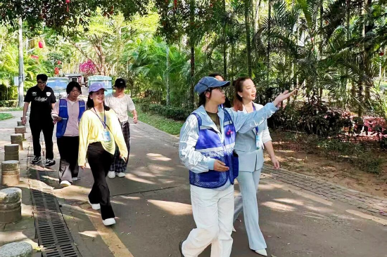 蔡家大院门口,海南软件职业技术学院校长韩小雨与正在留客村开展讲解服务的志愿者们亲切交流,详细询问大家在年会期间的讲解工作安排、服务接待情况及生活保障细节,实地查看志愿者讲解点位,观摩志愿者的现场讲解。
