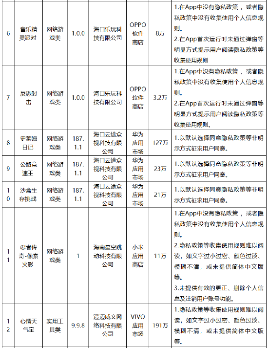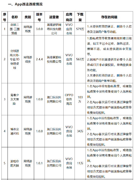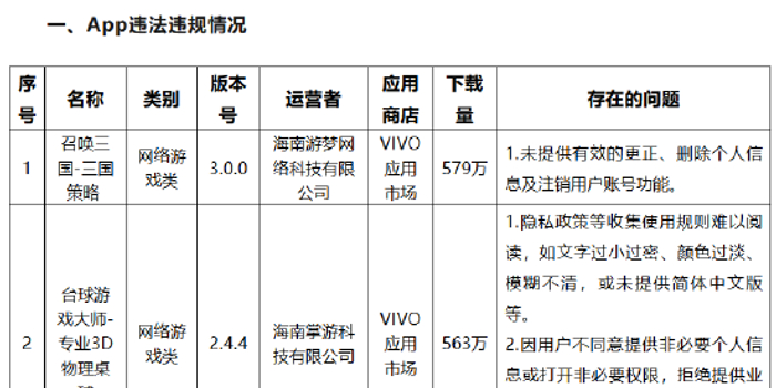 关注为深入推进海南省个人信息保护领域专项治理工作,针对群众反映强烈的移动应用程序(包含App、小程序等)非法获取、超范围收集、过度索取权限等侵害公民个人信息的违法违规现象,海南省互联网信息办公室依据《中华人民共和国网络安全法》《中华人民共和国个人信息保护法》《App违法违规收集使用个人信息行为认定方法》《常见类型移动互联网应用程序必要个人信息范围规定》等法律和有关规定,组织对省内用户量大的移动应用程序收集使用个人信息情况进行了技术检测,检测结果显示“召唤三国-三国策略 ”“台球游戏大师-专业3D物理桌球”“青春少女大冒险”等20款移动应用程序均存在不同程度违法违规收集使用个人信息的行为,现将有关情况通报如下: