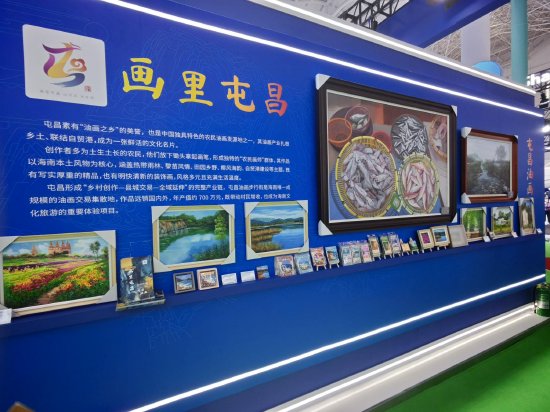 在海南馆内,屯昌展区备受关注。县油画产业协会选送的12幅精品创作以海南热带自然景观、黎族苗族人文风情和乡村发展新貌为素材,笔法细腻、表现生动,较好传递了“中国油画之乡”的深厚创作传统。同时陈列的特色农副产品、工艺水晶等实物展品也引来不少客商与市民驻足观赏、拍照记录。