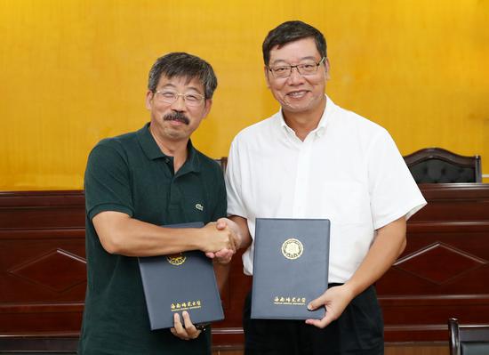 在签约仪式上,林强为12位在法专家颁发了海南师范大学客座教授聘书,并代表学校与张勇民院士、全法中国科技工作者协会分别签约。随后,在法专家分两组参加了在分会场举办的国际科技合作深入洽谈会和国际教育合作深入洽谈会,双方交流热烈融洽,均表示希望在科研、教学、人才培养等方面开展多层次、多领域合作。