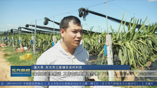 东方市三家镇乐安村党支部书记 符成辉:我们发展这么多产业,给村民们带来了务工增加收入,我们引导村民发展高效农业给村民得到产业的好的收获,夯实产业基础,推动乡村振兴。