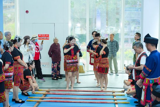 展览交易区特邀免税、景区、亚沙会官方特许商品、城市文创、非遗文创、海岛伴手礼、特色茶饮等特色优质商家代表入驻,打造一站式文化消费新场景。展会期间,三亚馆联动三亚千古情、三亚市文化馆带来沉浸式歌舞表演,非遗打柴舞、疍家渔歌、黎苗快闪舞蹈等特色节目轮番登场,让观众感受非遗文化的魅力。更有亚沙会吉祥物巡游互动环节,可爱萌趣的吉祥物穿梭于展区之间,与市民游客互动合影,传递亚洲沙滩运动会活力与城市热情。三亚市文化馆《鹿城寻遗》展区集中呈现三亚非遗资源与黎苗特色文化,手作商家同步开设沉香手作、宋锦美学饰品等非遗手作体验项目,让市民游客亲手解锁传统工艺魅力,触摸本土匠心传承。
