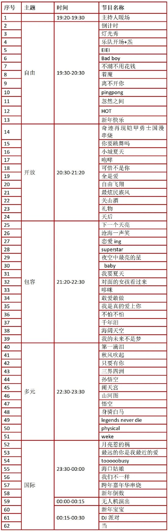 最终的歌单请以现场实际情况为准