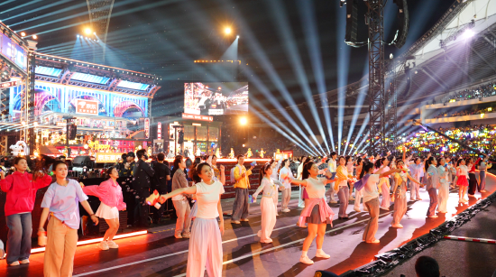 跨年夜,海口五源河体育场星光熠熠,2025-2026湖南卫视、芒果TV跨年演唱会在此盛大举行。超百组明星齐聚,打造了一场顶级的视听盛宴,场内数万观众手持荧光棒,欢呼声与音乐声响彻夜空。这场高规格演艺盛事不仅带来了热烈的节日氛围,更显著拉动了区域消费增长,周边酒店预订火爆,多家提前售罄;餐饮商圈客流如潮,夜间经济活力十足。同时也充分彰显了秀英区作为海口“国际演艺之都”核心承载区的强大吸引力与接待能力,为进一步引进和培育高品质演艺项目、建设具有全国影响力的演艺集聚区注入了强劲动能。