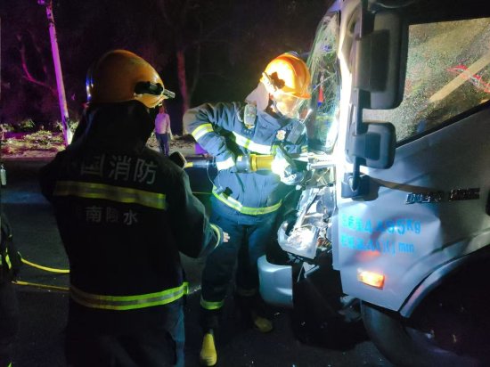凌晨高速追尾司机卡驾驶室 陵水消防破拆紧急救人