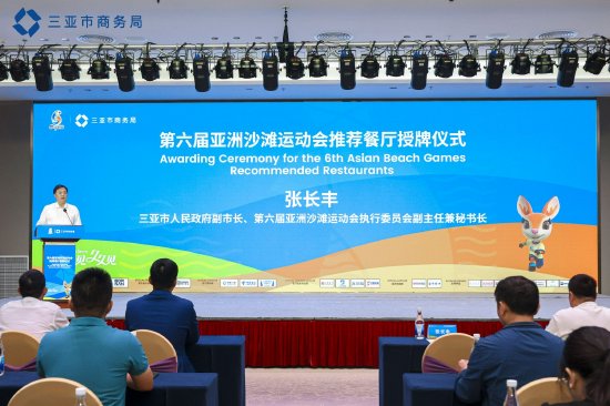 本次活动由三亚市人民政府指导,第六届亚洲沙滩运动会执委会、三亚市商务局联合主办,三亚市餐饮产业促进、美团等多部门及平台联合支持。三亚市人民政府副市长、第六届亚洲沙滩运动会执行委员会副主任兼秘书长张长丰、三亚市商务局党组书记、局长、第六届亚洲沙滩运动会执行委员会市场开发部副部长郑聪辉等领导和嘉宾出席授牌仪式。