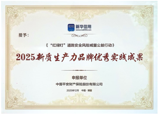 平安“红绿灯”公益行动通过警保联动,有效助推道路交通安全向事前转型,为广大群众出行创造安全、有序的道路交通环境。该公益行动获得了社会各界广泛认可,此前入选金融业“为民办实事”暖心服务范例。该公益行动再度荣膺“2025新质生产力品牌优秀实践成果”,不仅彰显了平安产险在风险减量服务的积极成效,更是对其始终践行“金融为民”初心的有力见证。(平安产险海南分公司供稿)