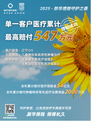 每一次赔付都兑现着医疗保险的价值,在疾病与意外面前,让每一次医疗选择,都只关乎生命,不囿于金钱。未来,新华保险将继续以专业、温暖的服务,守护每一位客户的健康之路,陪伴每一个有需要的家庭跨越生命的难关,让希望永在前方。
