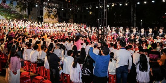 篇章三 “民族团结・共筑华章” 升华主题。多民族舞蹈串烧《舞韵贺春来》、服饰秀《家园》及汉服情景秀《莲鼓越歌行》轮番上演,展现 “中华民族一家亲”的和谐画卷,呼应五指山 “全国民族团结进步模范集体”荣誉。