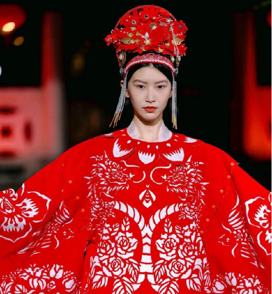 内容:重头戏登场!看剪纸纹样如何化身时尚华服,模特身着“山海黎锦”在光影中走出千年非遗的现代风姿。