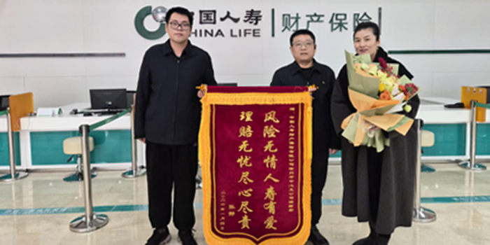日前,江苏徐州贾汪工业园区某家具厂负责人专程向中国人寿财险江苏省徐州市中心支公司送上一面印有“风险无情人寿有爱 理赔无忧尽职尽责”的锦旗,感谢中国人寿在火灾事故后提供的高效、暖心理赔服务,为灾后重建注入强心剂。