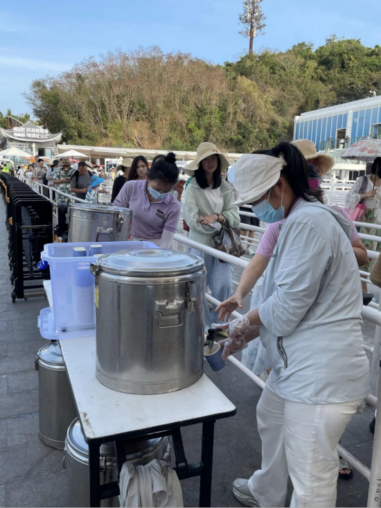 景区在排队区为游客准备了姜茶。