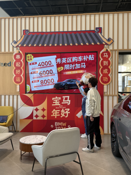 比亚迪推出“新春购车权益礼包”,涵盖高达4万元补贴的超大置换礼、指定车型送8年8次保养套餐、0首付0利息金融礼等,吸引大量家庭客群到店。宝悦宝马结合秀英区购车直补,推出“到店试驾礼”“新春购车礼盒”及特定车型0首付/免息服务,邀约到店吸引力大增。春节期间累计收获订单10余台,油电各占一半,进店客流同比增长2倍。
