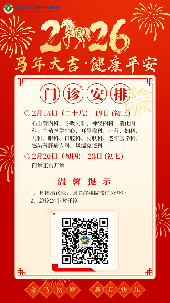 从除夕的守岁到春节假期里每一天的坚守,从急诊的彻夜通明到门诊的全面恢复,到病区的日渐繁忙,海医一附院的守护从未停歇。无论您是趁着人少前来就诊的上班族,还是需要持续治疗的住院患者,我们都将以“一马当先”的担当、“快马加鞭”的效率,“初心不歇”的承诺,为您提供温暖而贴心的健康守护。您的健康,我们始终放在心上!新的一年,愿我们策马扬鞭,奔腾向前,共赴健康新征程!