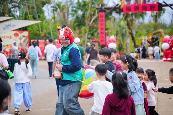 园区还设置了多个主题打卡区、“海野抓马大会”、欢乐歌舞巡游、财神送福、手工DIY等互动环节,为家庭游客带来无限欢乐。