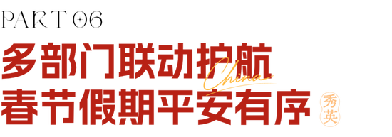 秀英区市场监管、环卫、公安、消防、交警、联防、城管、宣传及12345热线等各条战线坚守岗位,通过“白+黑”勤务模式,紧盯“三品一特”安全、烟花爆竹管控、环境卫生保洁、春运交通疏导、消防安全检查、旅游市场秩序等重点领域,织密织牢安全防护网。春节期间,全区市场秩序良好,高效、贴心的服务保障为市民游客营造了舒心、安心的节日环境。