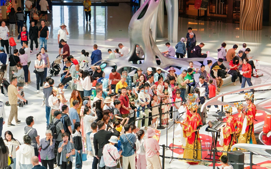 海口远大购物中心、海口万达广场等商业综合体推出了各类新春促销和互动活动,舞狮表演、非遗琼剧、财神送宝、积分兑换等吸引了大批市民游客前来逛街、购物、聚餐,餐饮、影院、零售等业态迎来客流高峰。