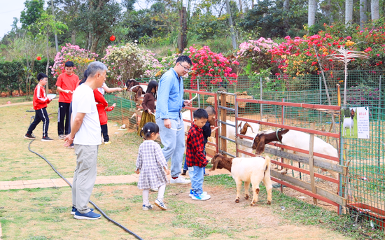 在火山榕园植物迷宫,除了探索迷宫乐趣,园内儿童乐园的跷跷板、秋千等设施让孩子们尽情撒欢。此外,大树农场的萌宠互动与新春市集,火山云艺术小院的陶艺制作体验,溪和农场的互动小游戏,海南壹号农庄的地道美食,这些乡村休闲业态串珠成链,为游客提供了丰富多彩的乡村旅游选择。