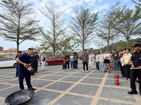 消防器材实操环节中,大队宣讲员现场演示干粉灭火器 “提、拔、握、压” 四字操作口诀,指导教职工在距离火源 3-5 米的上风方向对准根部喷射。全体教职工分组实操,宣讲员逐一纠正动作偏差,确保人人熟练掌握技能。