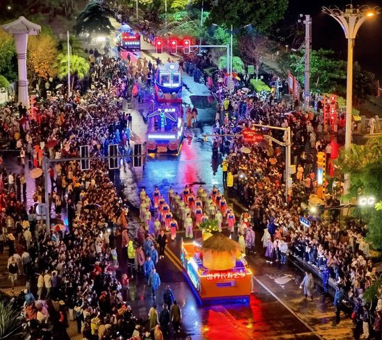 当临高人偶戏方阵款款走来,非遗传承人手持木偶,与真人同台演绎经典桥段,细腻的唱腔、传神的动作引得阵阵喝彩。“小时候就看人偶戏,现在带着孙子来看,县领导也和我们一起赏,心里特别暖!”家住临城镇的李大爷感慨。
